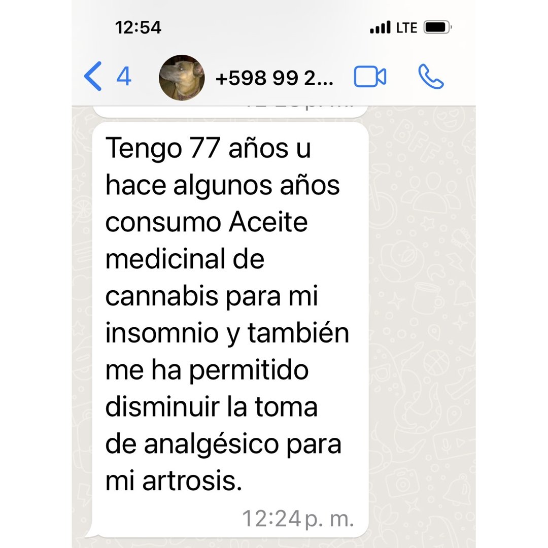 * Después de comprar por donde me lo envían? Se colocan los paquetes de L a V en Ag. Central DAC fines de tarde, luego pasamos el tiket con rastreo. * Cuando veo los efectos? Según cada enfermedad y metabolismo, a los días o dentro del mes. * Cuantas gotas tomo? 5 de mañana 5 de tarde antes de las comidas (para casi todos los casos en adultos) después se regula siendo que cada organismo es diferente. * Tiene contraindicaciones? No, sin químicos y se puede tomar aunque tomes medicamentos, 99% CBD Aislado. * Que aceite me conviene? Cuánto más graduación (%) es más rápido el efecto. * Para mi mascota? Tenemos para perros, gatos y equinos. * Para mi hijo? Empezar con el más suave 6% y después se puede subir de % o de gotas. * Dejo de tomar los medicamentos con químicos? Empiezas con las gotas y después vas bajando la medicación o consultas con tú médico. * Cómo se toman las gotitas? Directamente y enseguida vaso de agua o jugo 20 min antes de las comidas. También se puede sublingual. * Para dolores en general y dormir? 5 de mañana 5 gotas una hora antes de acostarse o consulte a su medico. * Cuanto dura el frasco? 30ml dura de mes a mes y medio. * Y la crema? Poderoso analgésico y antiinflamatorio, se aplica las veces necesarias. * Y la Tintura? Igual que el aceite pero la disolución es con alcohol de cereales “comestible” y extracto de CBD. La aplicación es cutánea y para tomar. * Donde conservo los frascos? A temperatura ambiente fuera del alcance de los niños. * Que es el Cannabidiol? La abreviatura es CBD. * Donde se encuentran? Oficina en Montevideo, cerrada al público, ÚNICAMENTE enviamos por DAC, Correo o Mirtrans con número de rastreo. * Cuanto cuesta el envío a mi casa o sucursal? $240a todo el país y en la compra web ya se coloca (únicamente que diga envió grátis) * Cuando llega mi paquete? Los tiempos dependen de la agencia, por este motivo pasamos fines de tarde el “TICKET CON RASTREO” y por cualquier consulta al 1717 int. 1 (Dac).